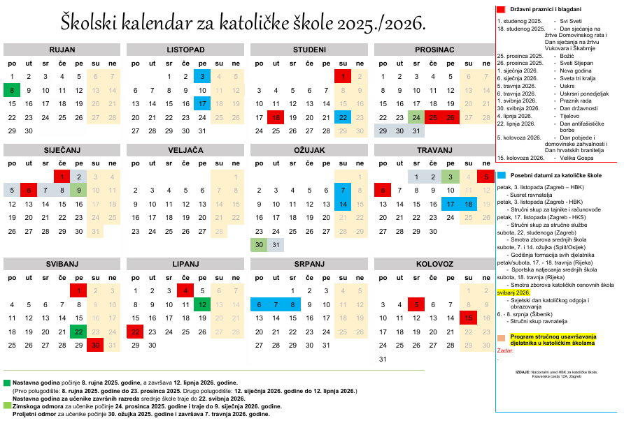 Školski kalendar za katoličke škole 25_26Preuzmi