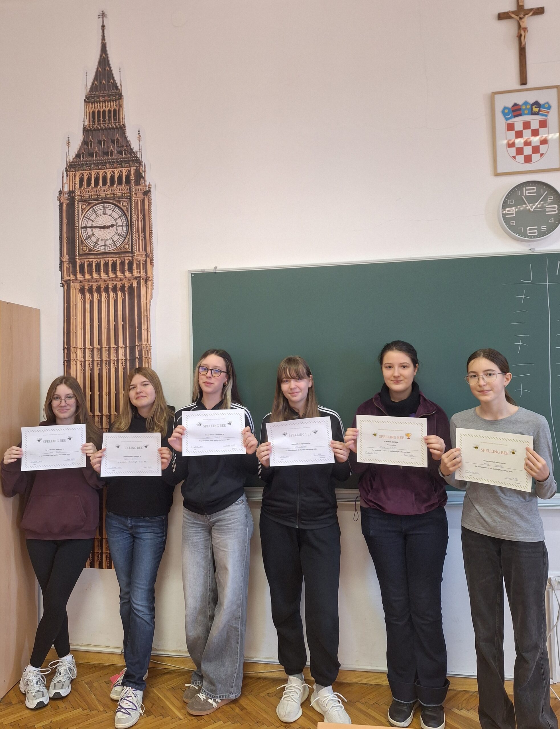 I ove je godine u našoj školi 4. i 11. ožujka održano natjecanje u sricanju – Spelling Bee. Na natjecanju je sudjelovalo 6 učenika osmih razreda i 7 učenika sedmih razreda. Prvo mjesto u kategoriji sedmih razreda osvojila je učenica Victoria Gallici (7. b ), a prvo mjesto u kategoriji osmih razreda učenica Leona Vidak (8. a).