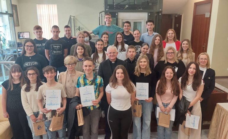 Riječki nadbiskup Mate Uzinić susreo se u srijedu, 21. svibnja, u Velikoj dvorani Nadbiskupskog ordinarijata u Rijeci s učenicima osnovnih i srednjih škola – pobjednicima županijskog/nadbiskupijskog natjecanja iz vjeronauka, koje je održano u utorak, 25. ožujka, u OŠ Srdoči na temu: „1100 godina od splitskih crkvenih sabora i početaka hrvatskoga kraljevstva (925.–2025.)“.